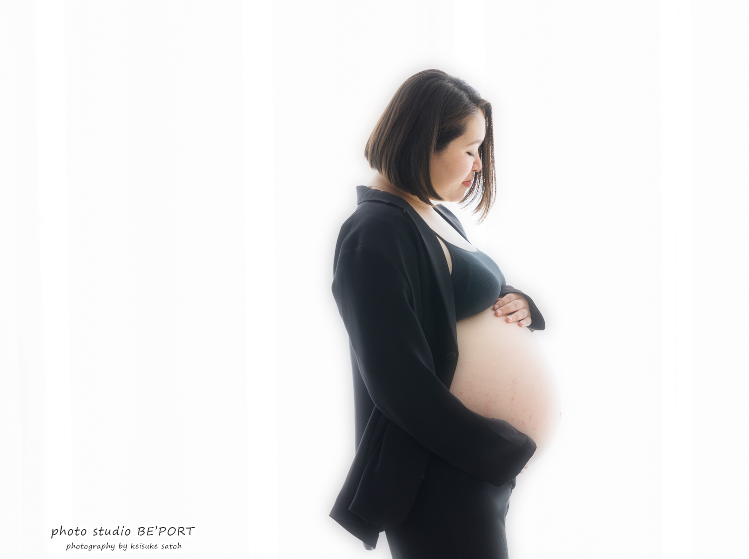 BE'PORTのマタニティフォトは、あくまでイメージを優先します。神秘的な姿。母になる歓び。ママの可愛らしさ。やわらかな曲線美。家族の気持ち...etc こんな雰囲気を表現できるように撮影します。