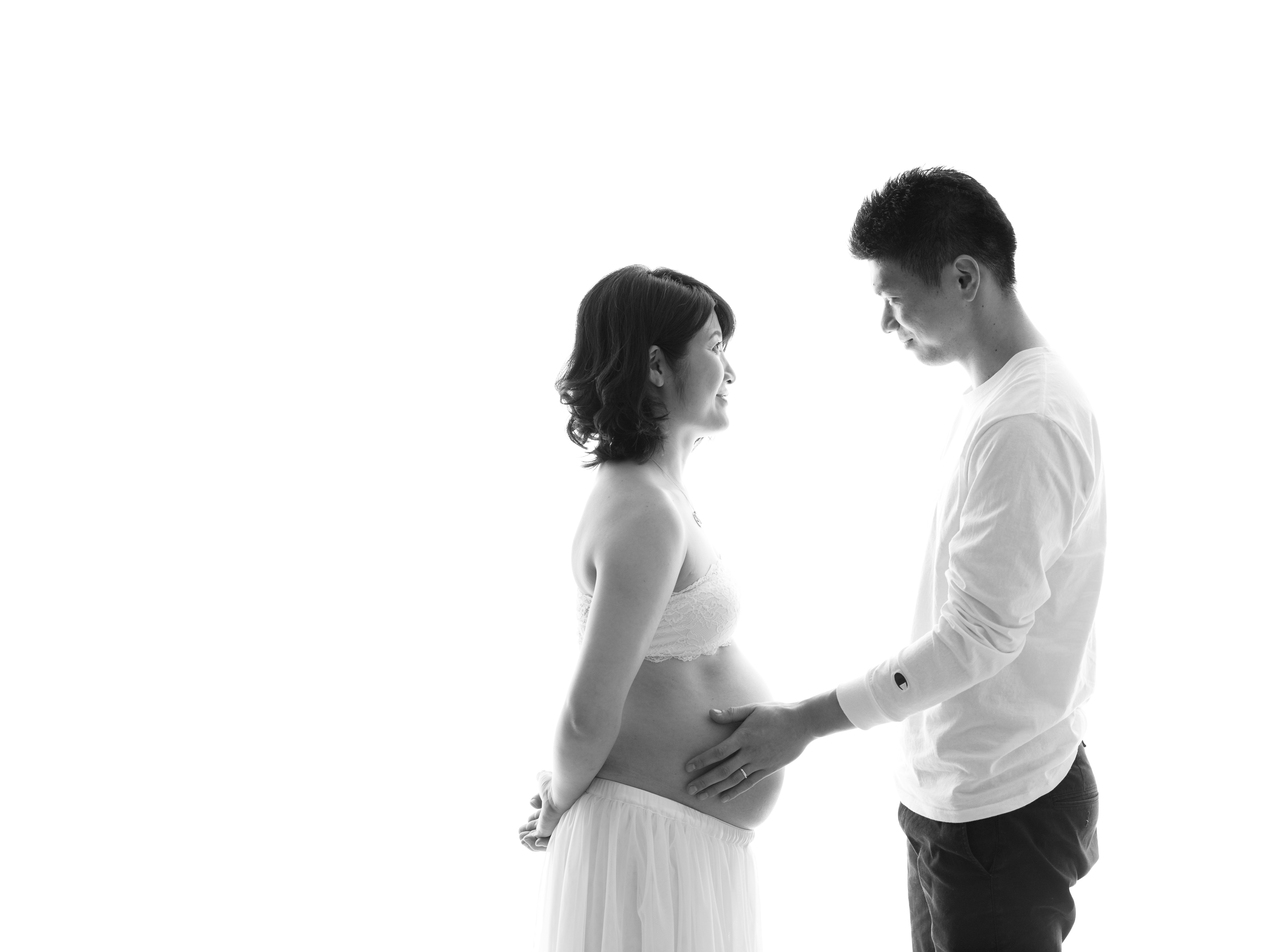 この時の妊娠線や体毛等は、デジタルならではのレタッチでキレイに出来ます。普段通りの服装でも、オールヌードでも。勿論お衣裳もご用意しております。お好みのスタイルで撮影をお楽しみください。